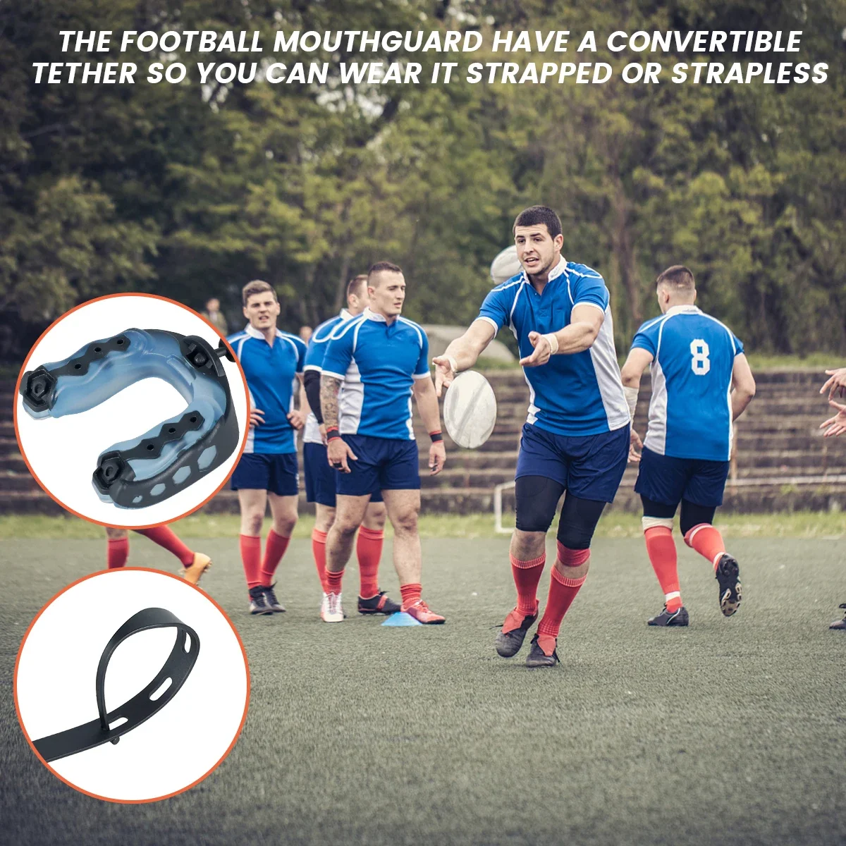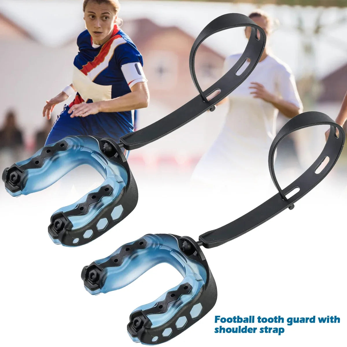 2pcs Football Mouth Guard Professional Sports Mouth Braces for Kids Soft Youth Football Mouthpiece with Strap Boxing Mouthguard