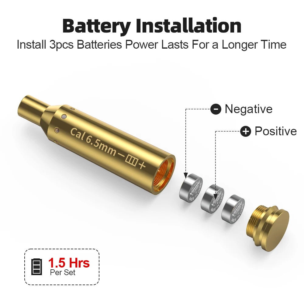 6.5MM Optics Cartridge Red Dot Laser Bore Brass Bore Boresighter For Pistol Rifle Scope Hunting Accessories 6 Batte