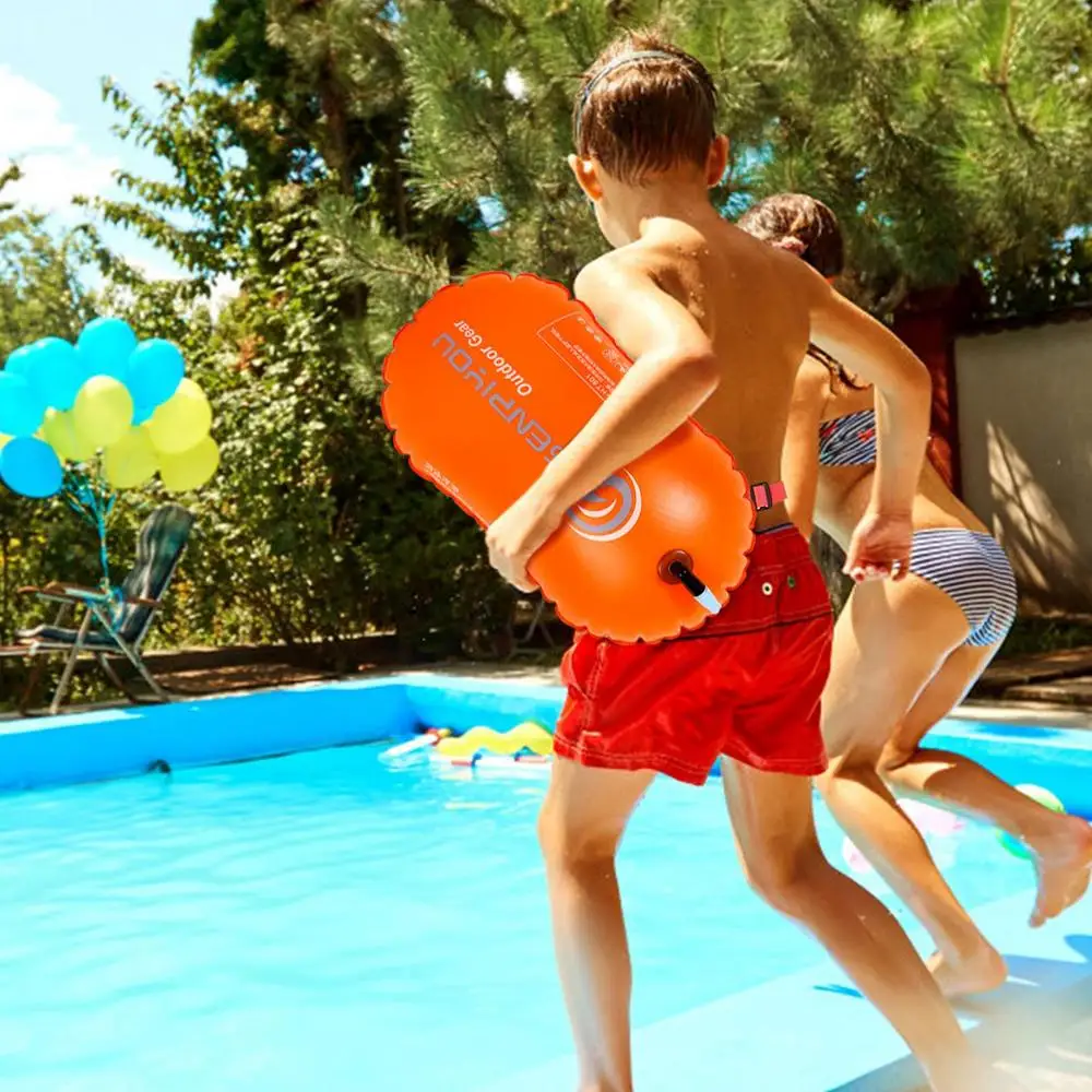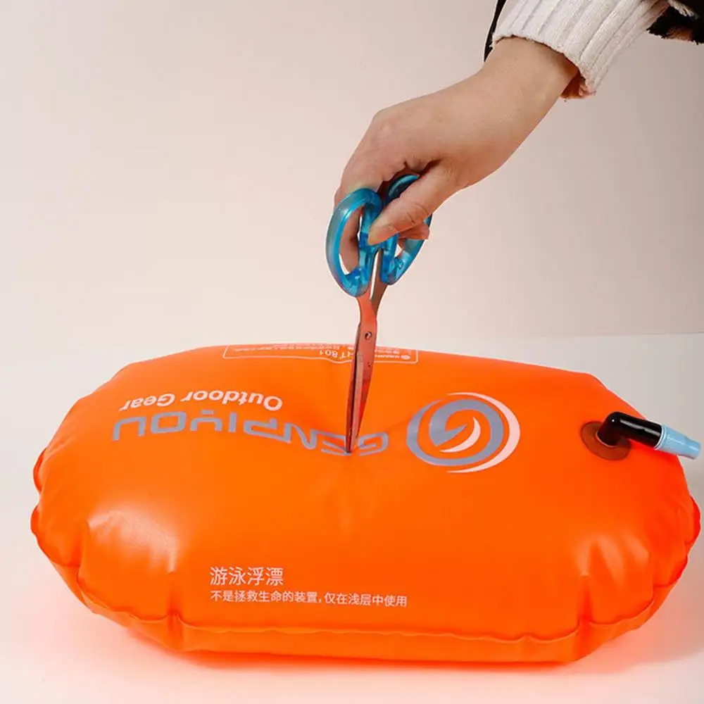 Inflatable Open Swimming Buoy Tow Float Dry Bag Double Air Bag with Waist Belt for Water Sport Swimming Storage Float Tools