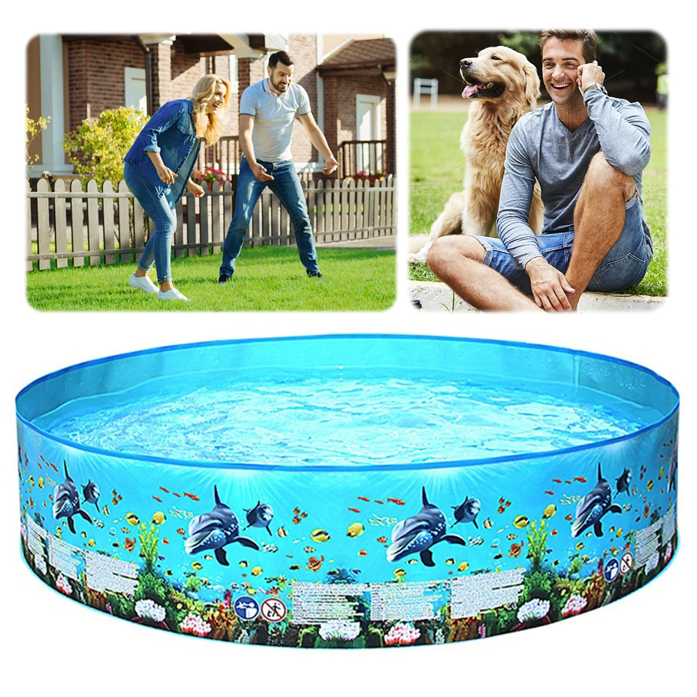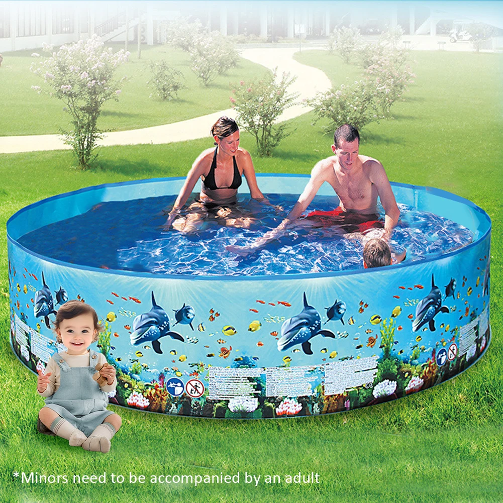 | Inflatable Swimming Pool Reusable Foldable Swim Ball Pool Baby Bathtub Pool for Outdoor Indoor Playing Water Accessories Features: 1.Water Fun and Cool Summer: The inflatable swimming pool is a gift for kids, family, pet dogs, and friends. They can enjoy hot summer days, and the backyard pool can double as an indoor foldable swim ball pool when cooler. 2.Quick and Easy to Use: No tools needed; no blowing up required, simply fill with water and use. Provides refreshment quickly, making it suit for hot summer days. 3.Vibrant Colorful Design: With fun and realistic dinosaur graphic prints, the spray pool adds a splash of excitement to your outdoor activities. 4.Child-Friendly Size: Our high-quality, outdoor, blow up family pool measures 244*38cm and holds up to 2196 gallons of water, enough for 4-6 people to play. It's for helping young learners gain swimming independence. 5.Versatile Swimming Pool: This baby bathtub pool suits toddlers' swimming, plus it serves as a ball pit or sandbox for kids and adults. Also great as housing for small pets like dogs and cats, usable outdoors, indoors, on balconies, at beaches, lakesides, etc. Specification: Origin: Mainland China Product size: 244x38cm/95.16x14.82in Material: PVC+Plastic Instructions: 1. After taking the product out of the color box, please unfold it and leave it for a few hours before using it. 2. Before filling the water, please place the product on a flat ground without rough objects, first spread the bottom of the pool completely into a circle, then stand up the pool wall and start filling the water. 3. When the water filling height reaches the water level safety line, stop filling the water. 4. When draining water, please press the pool wall lightly with your hand to drain the water. Never try to pull the pool wall or lift the pool. This operation will cause serious damage to the product. 5. There is a yellow repair sheet (about 6x6 cm in size) in the color box. Please keep it properly. If there is slight damage to the bottom of the pool, please tear off the plastic sheet on the back and use it to stick and repair the damaged area. Note: 1 x Folding Swimming Pool (Including 1 Repair Sheet) |