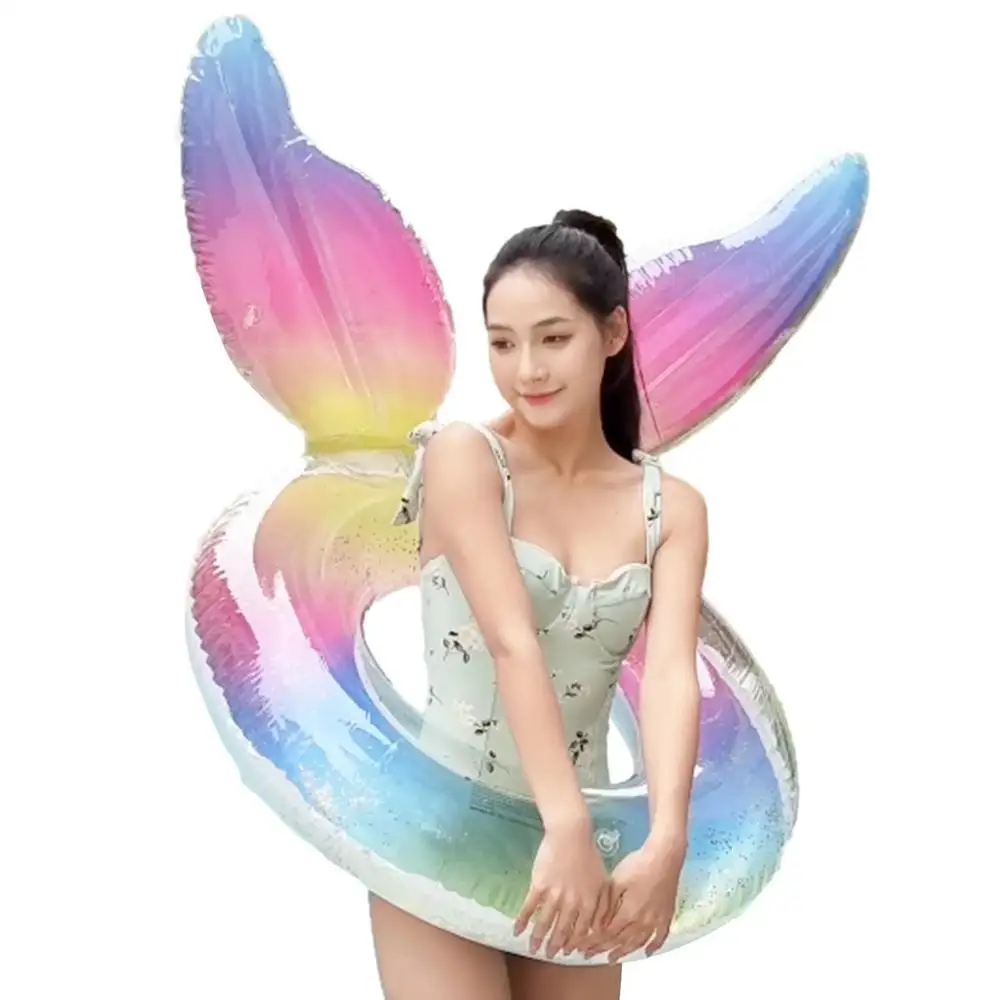 Inflatable Swimming Ring Mermaid Tail Sequin Pool Ring Floating Beach Party Toys For Adult Kids Water Play Tube Swimming Toys