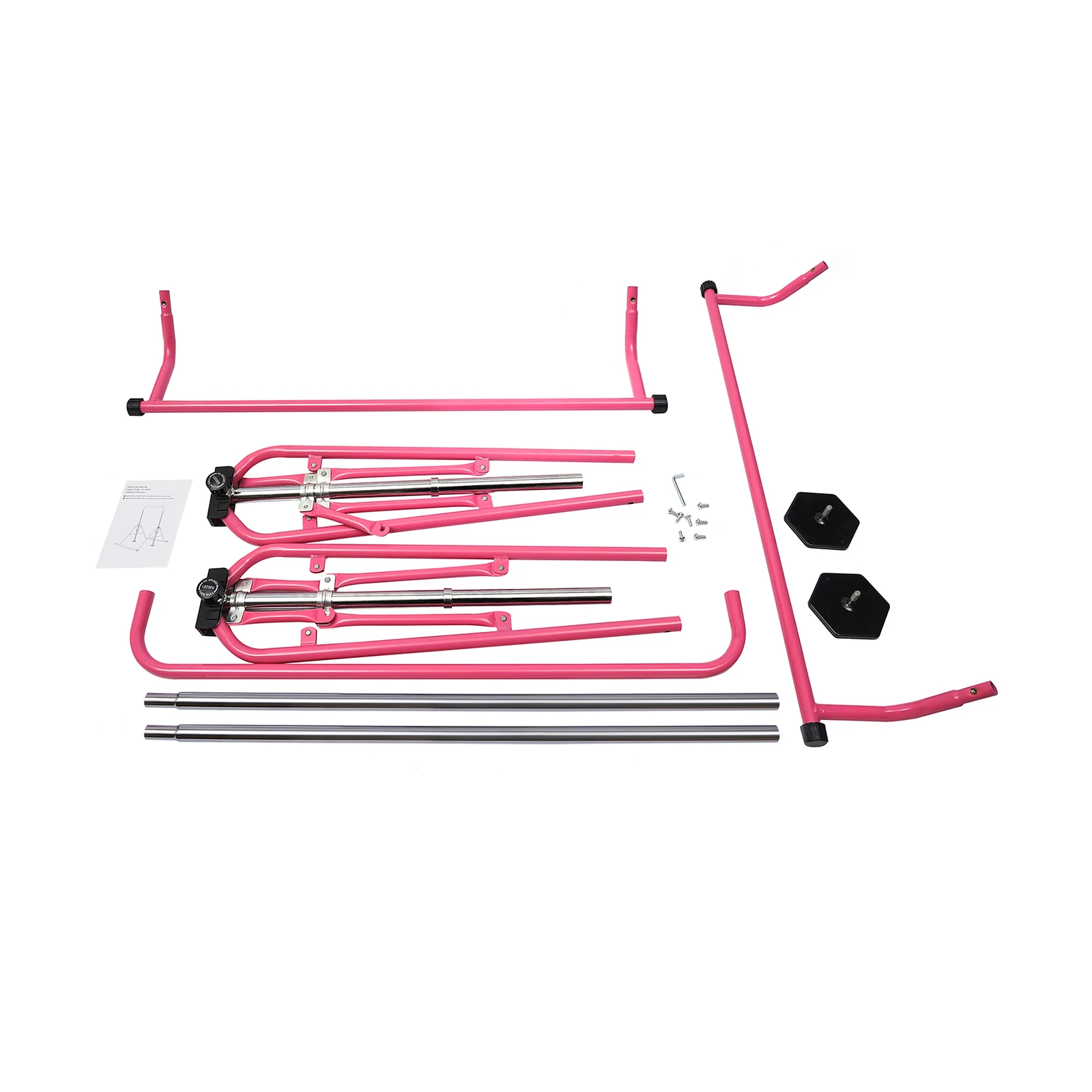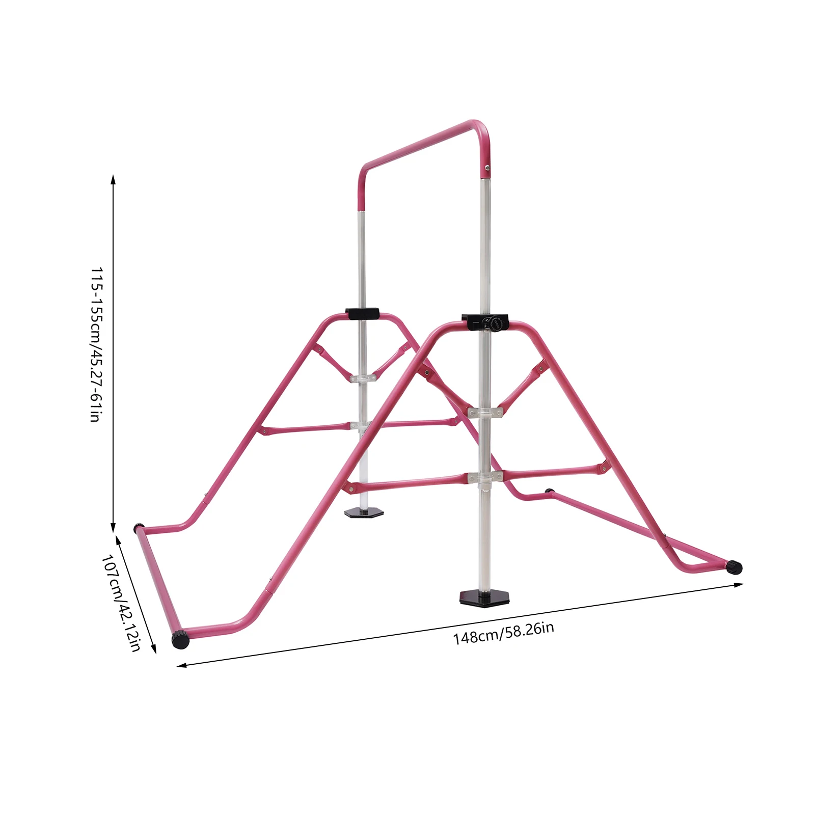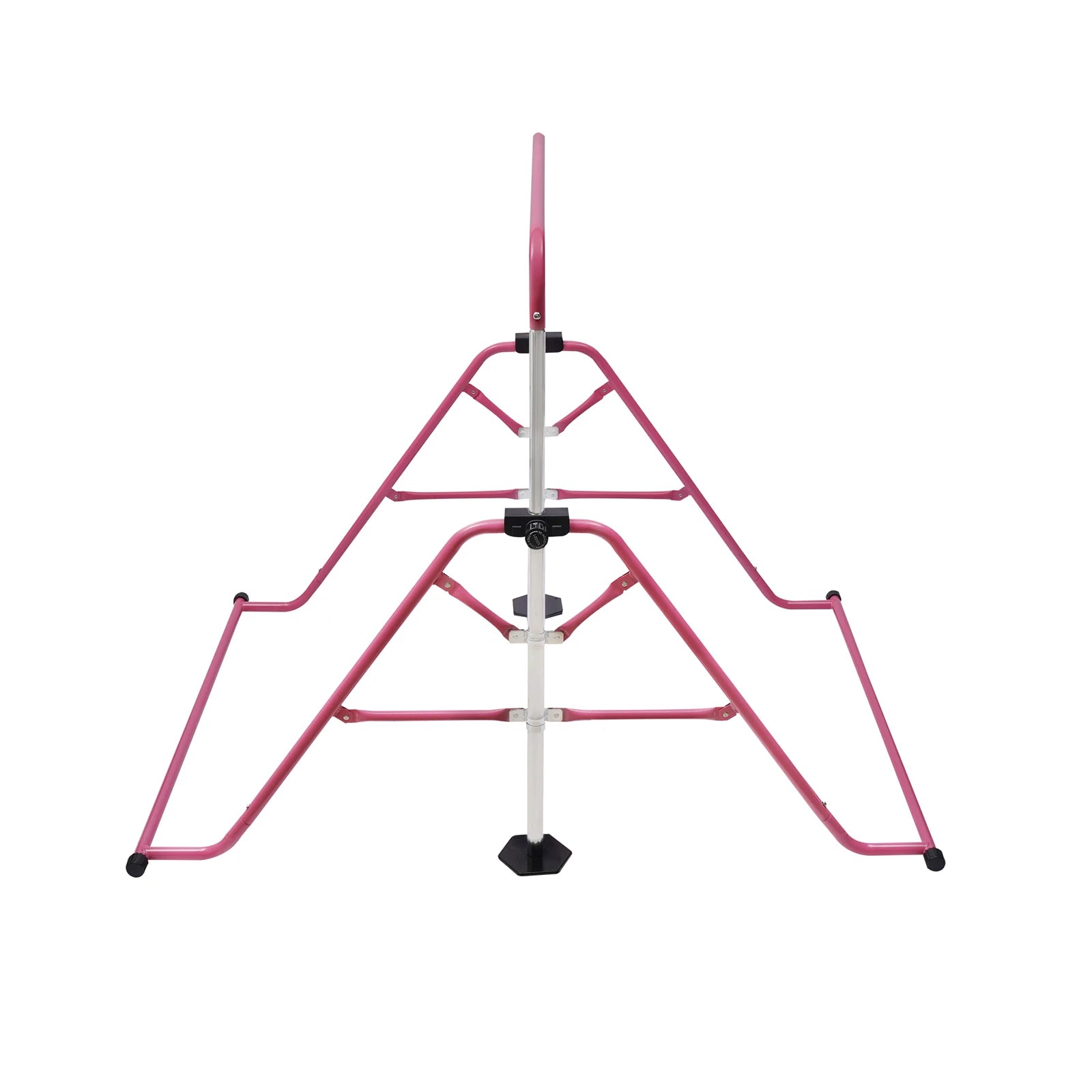 Pink Gymnastics Bars Foldable Children's Monkey Bars Adjustable Height Kids' Toy Indoors Outdoors Suitable 3-8 Years Old