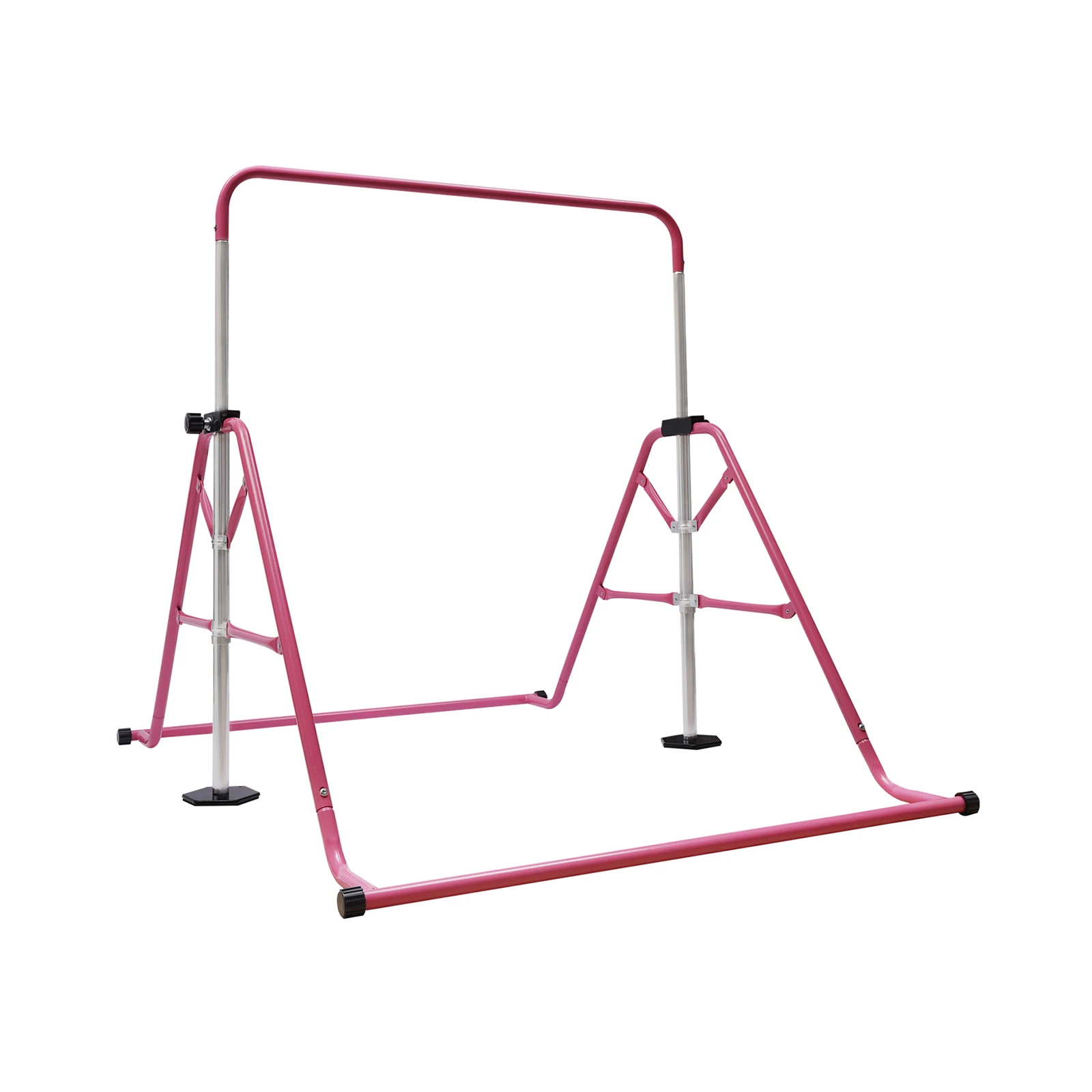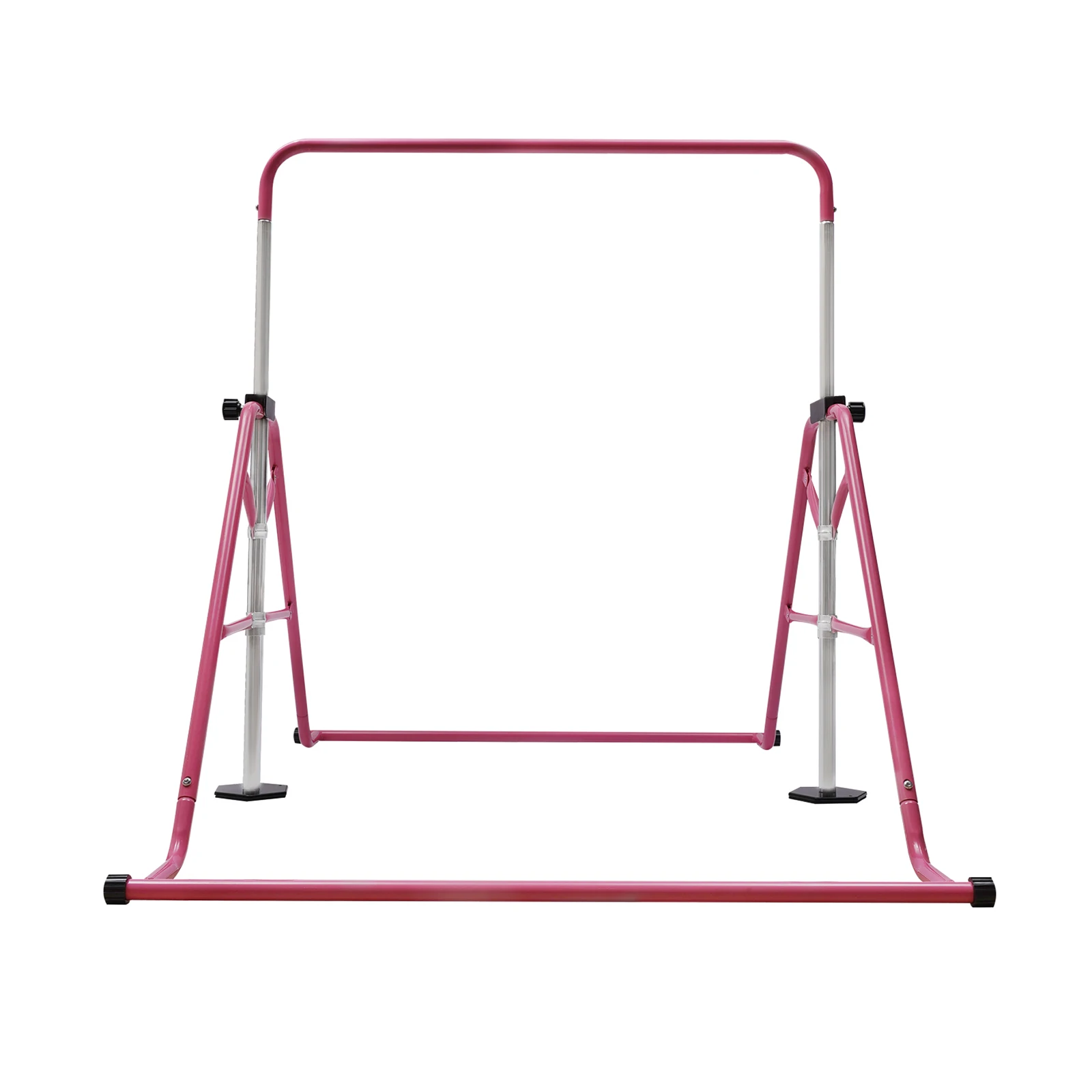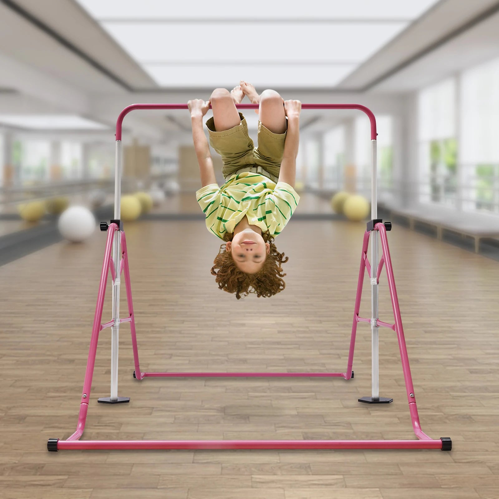 Pink Gymnastics Bars Foldable Children's Monkey Bars Adjustable Height Kids' Toy Indoors Outdoors Suitable 3-8 Years Old