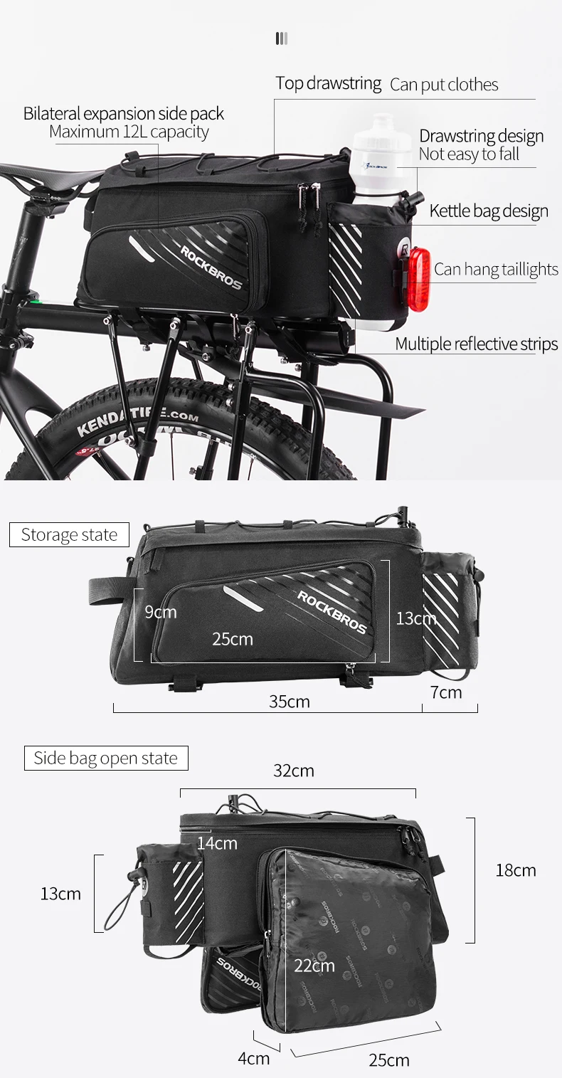 ROCKBROS Bicycle Seat Bags Cycling Rear Backpack Trunk MTB Cycle Travel Bag Large Capacity Outsdoor Sport Bike Pannier Package